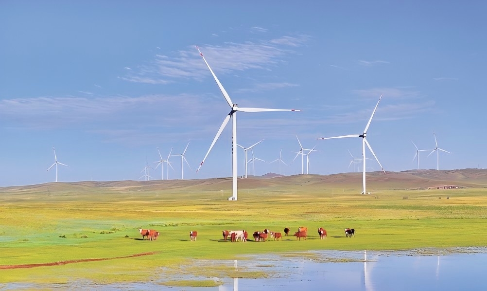 内蒙古自治区乌兰察布市,风力发电机将风能转化为绿色电能。宋卫星摄(人民视觉)