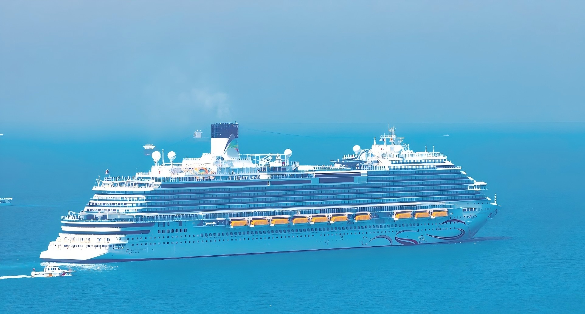 首艘国产大型邮轮“爱达·魔都号”驶向山东青岛邮轮母港。杨雪梅摄(影像中国)