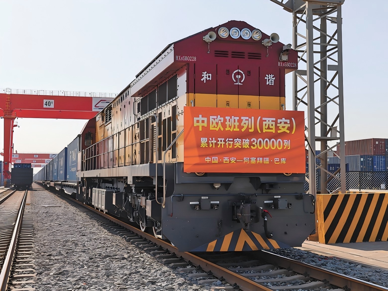 陕西省西安市,满载光伏组件的中欧班列从西安国际港站驶出。杨静龙摄(影像中国)