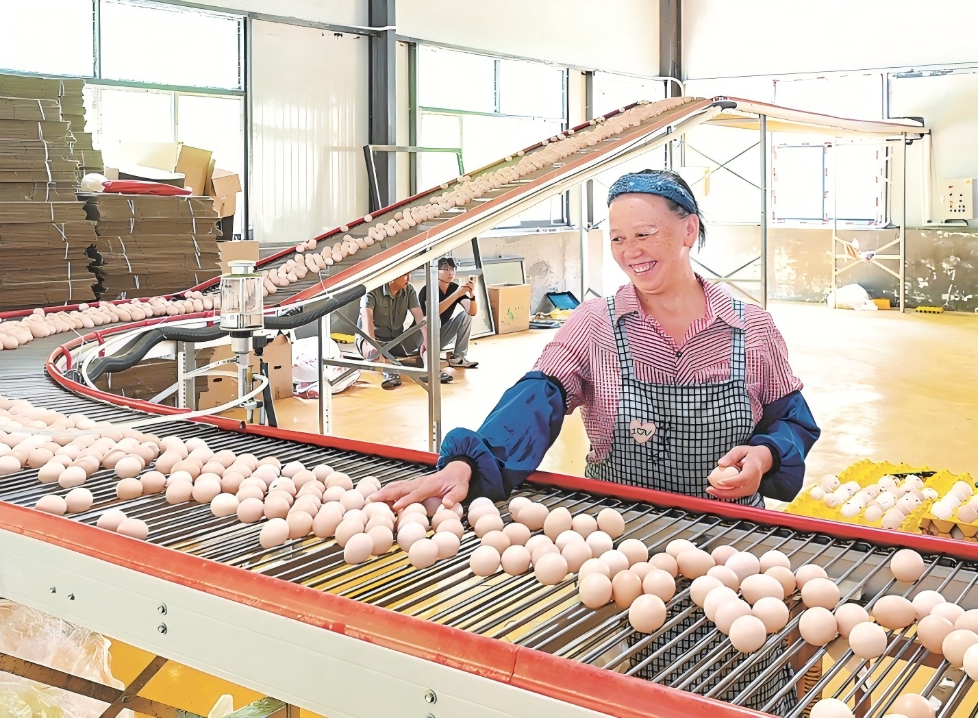贵州省晴隆县,东西部协作项目资金支持的一家蛋鸡养殖场内,工人在分拣鸡蛋。贾 智摄(影像中国)
