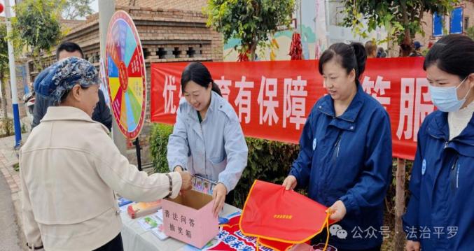 活动现场,工作人员早早布置好了宣传展台,“普法大转盘”和“有奖问答”区域格外引人注目,很快便聚集了不少前来参与的村民。
