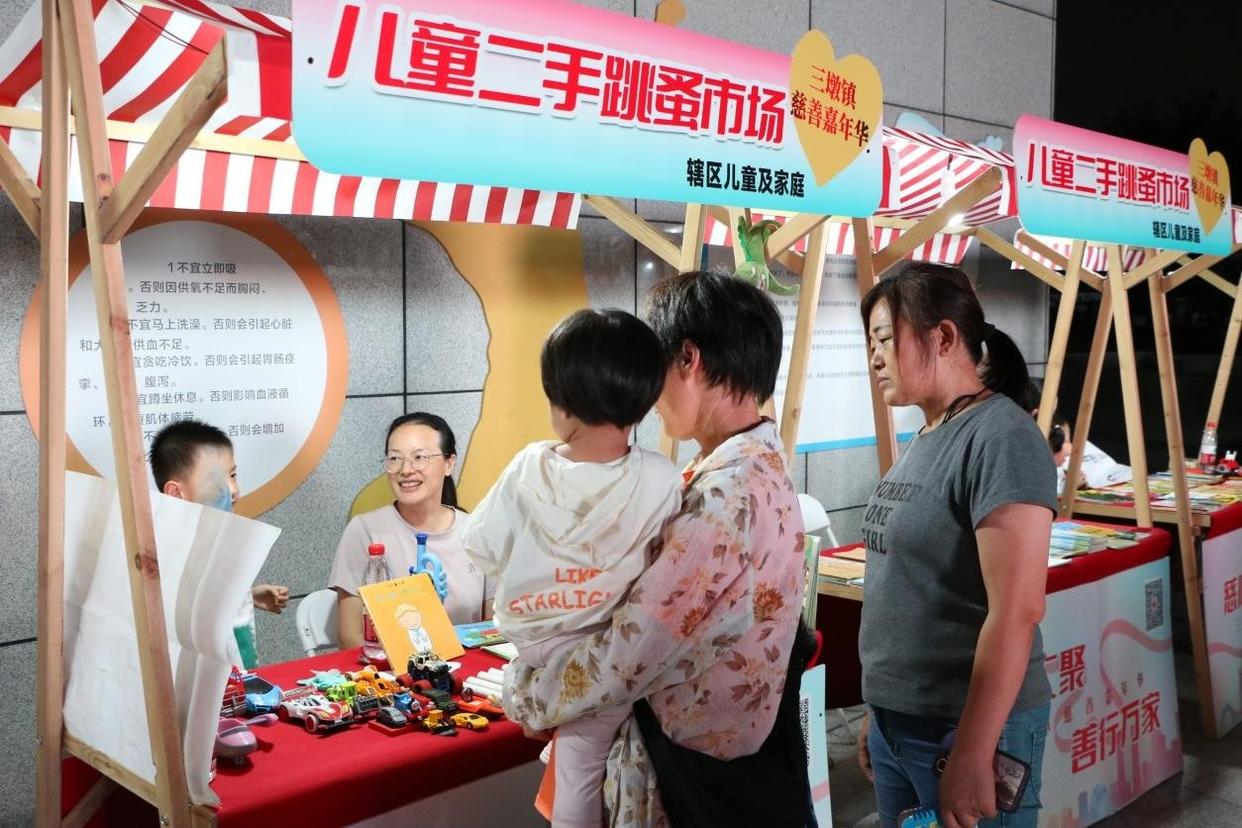 旧书玩具“再就业”、农产好物直销、心理咨询安静陪伴、银行反诈知识干货满满……一个个小摊汇成慈善长河,吸引众多居民参与。