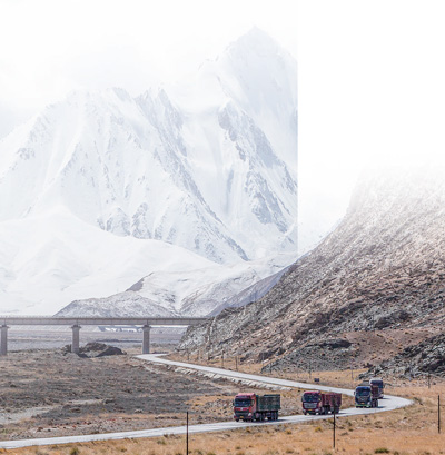 昆仑山上,青藏公路运输繁忙。陈林培摄