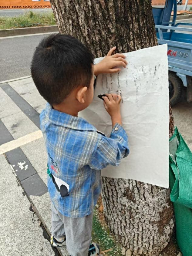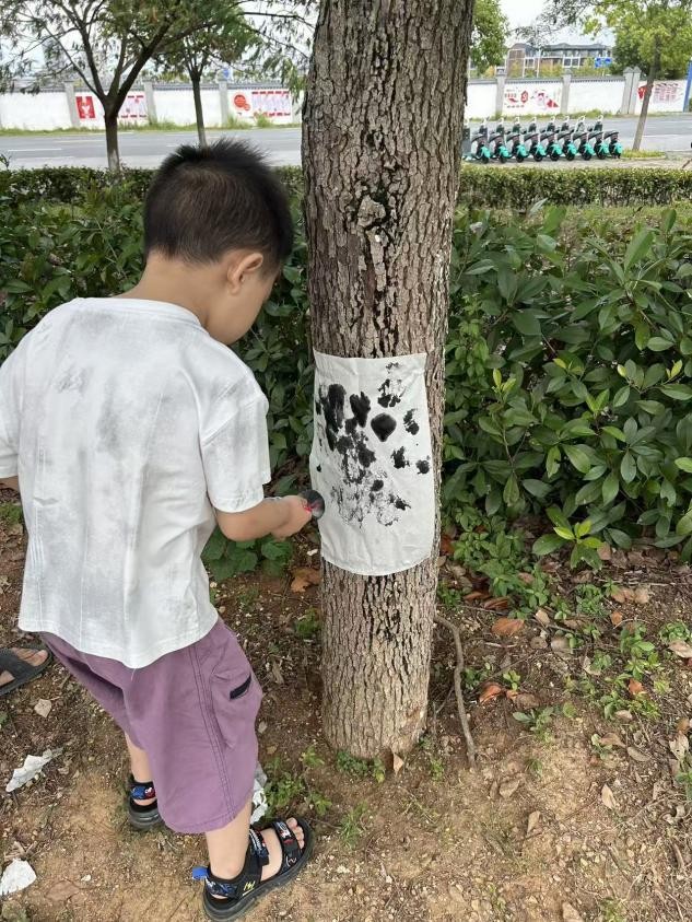 日前,永丰县第二幼儿园开展了一场别开生面的"树皮拓印"自然美育活动。孩子们在老师和家长的陪伴下,化身"自然小侦探",用小手轻触树皮纹理,体验传统拓印技艺。