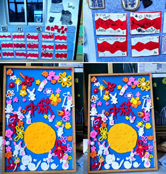 活动中,孩子们热情高涨。他们或用五彩的画笔在画纸上描绘天安门、五星红旗,表达对祖国的纯真祝福;或专注地用粘土制作出可爱的玉兔、香甜的月饼,装点中秋相框,感受传统节日的团圆氛围。现场气氛热烈,充满了孩子们的欢声笑语。