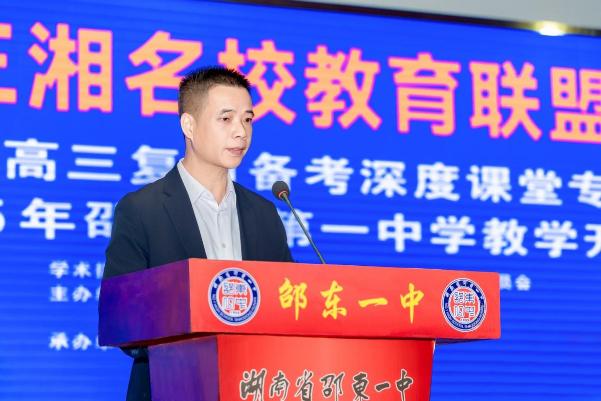 三湘名校教育联盟2025年下学期教学管理专题会议于上午同步在邵东一中名师工作室举行。会议由三湘名校教育联盟秘书长、双峰一中教学副校长彭必胜主持,会议旨在深化校际合作,聚焦高三备考、教师素养与拔尖人才培养三大核心议题,共同提升区域教学质量。随后,邵东一中张剑辉书记在致辞中回顾了学校自1905年建校以来的发展历程,重点介绍了其办学规模与特色。学校通过融合“三全二自”德育模式和“深度课堂”教学改革,构建了全方位育人体系,近年来高考成绩斐然,育人成效显著。三湘名校教育联盟盟主、明德中学王胜楚书记则从教学研究角度,分享了实现“质效双升”的实践路径。王书记围绕高考命题研究、个性化学生培养及文科教法创新三个维度,系统阐述了提升教学质量的具体举措。